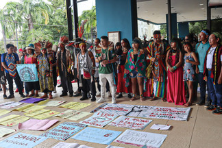 O PET CONEXÕES DE SABERES: Comunidades Indígenas participou nesta quarta-feira (7), juntamente com outras Organizações, de uma manifestação que objetivou a ocupação, pelos Povos Indígenas do Acre, da Assembleia Legislativa - ALEAC.